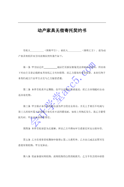 动产家具无偿寄托契约书.doc
