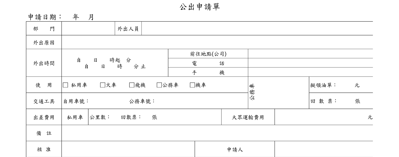 公出申请表