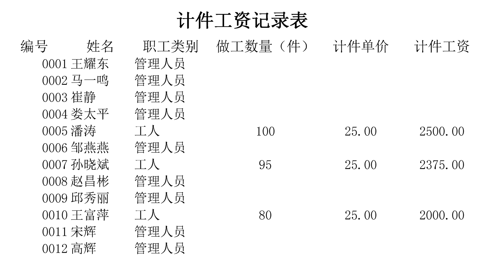 计件工资