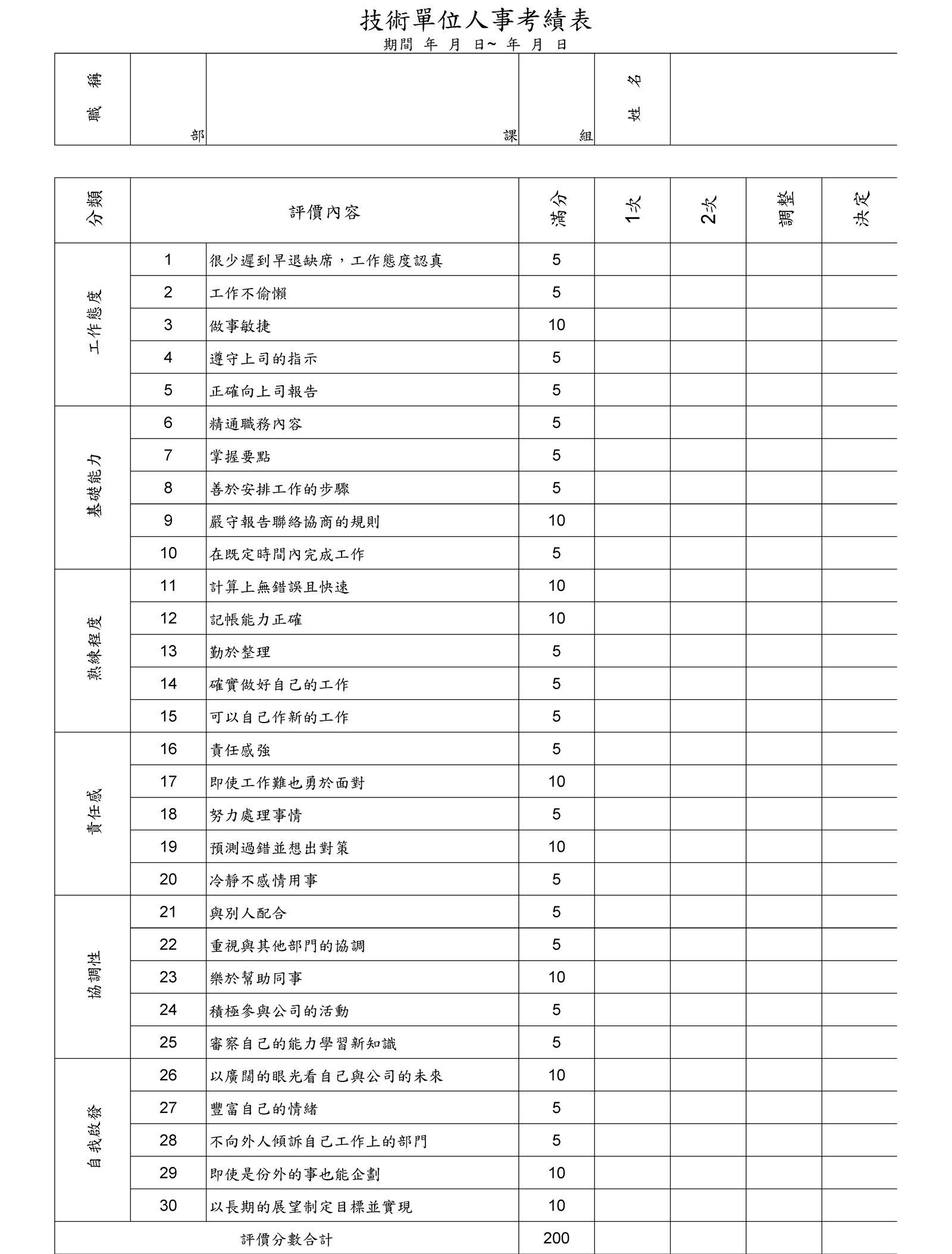 技術單位人事考績表介绍: