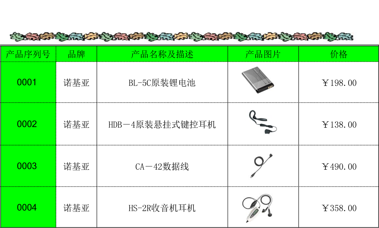 企业产品清单