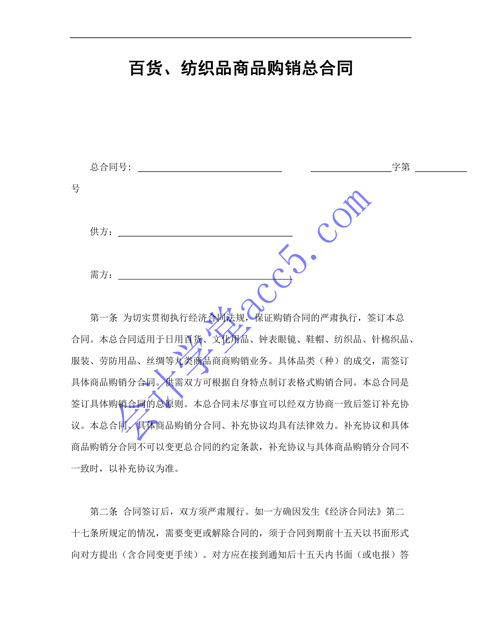 百货、纺织品商品购销总合同介绍: