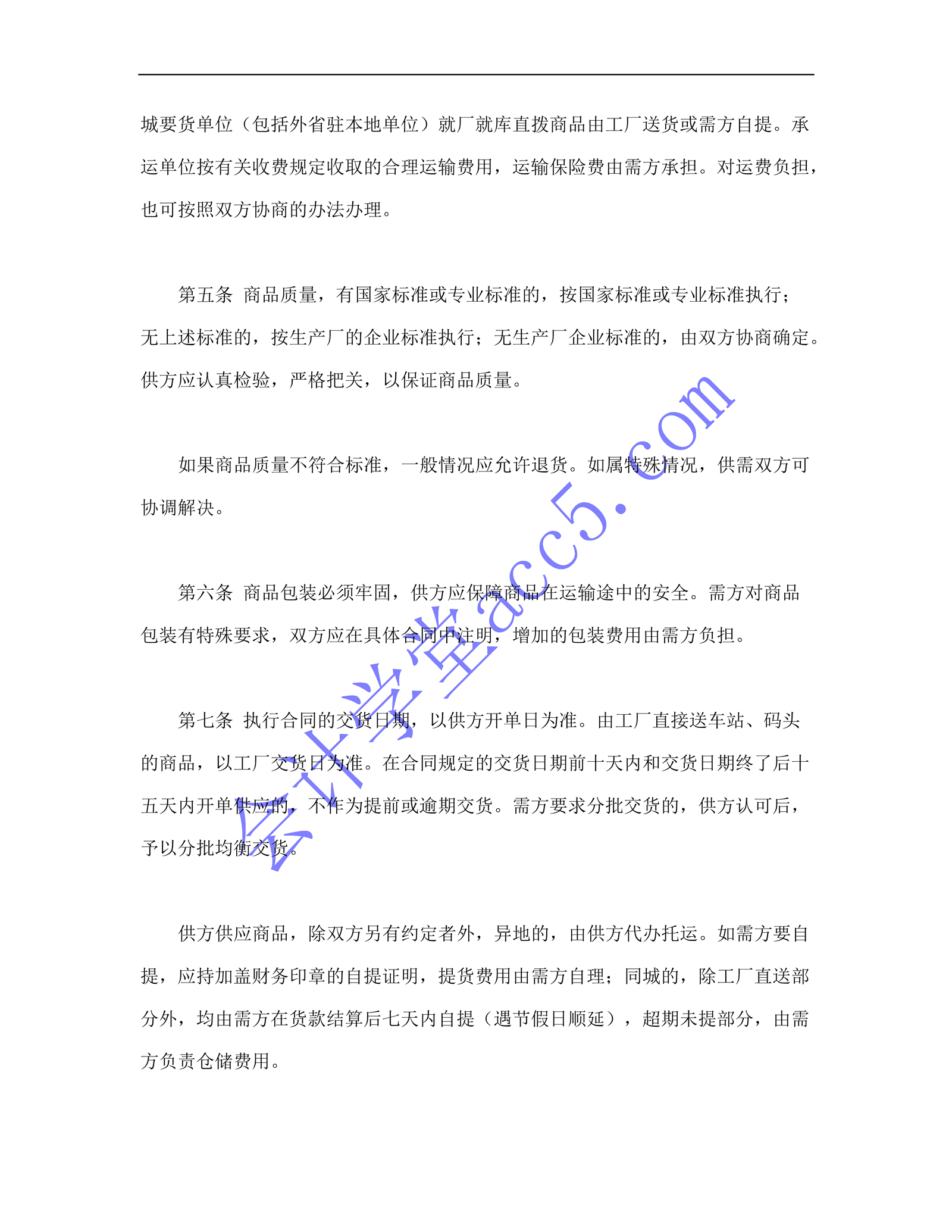 一般货物销售合同示范条款