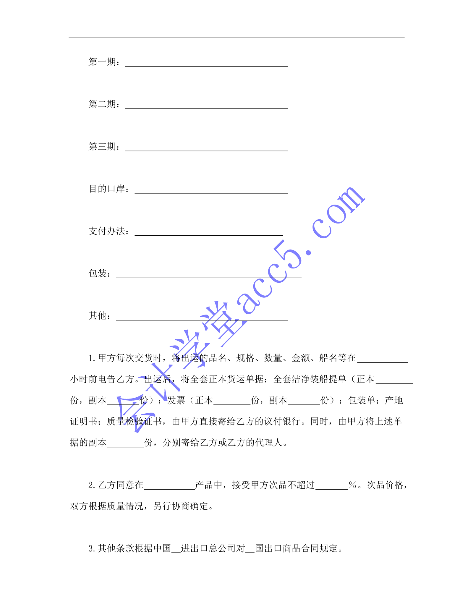 一般货物销售合同示范条款