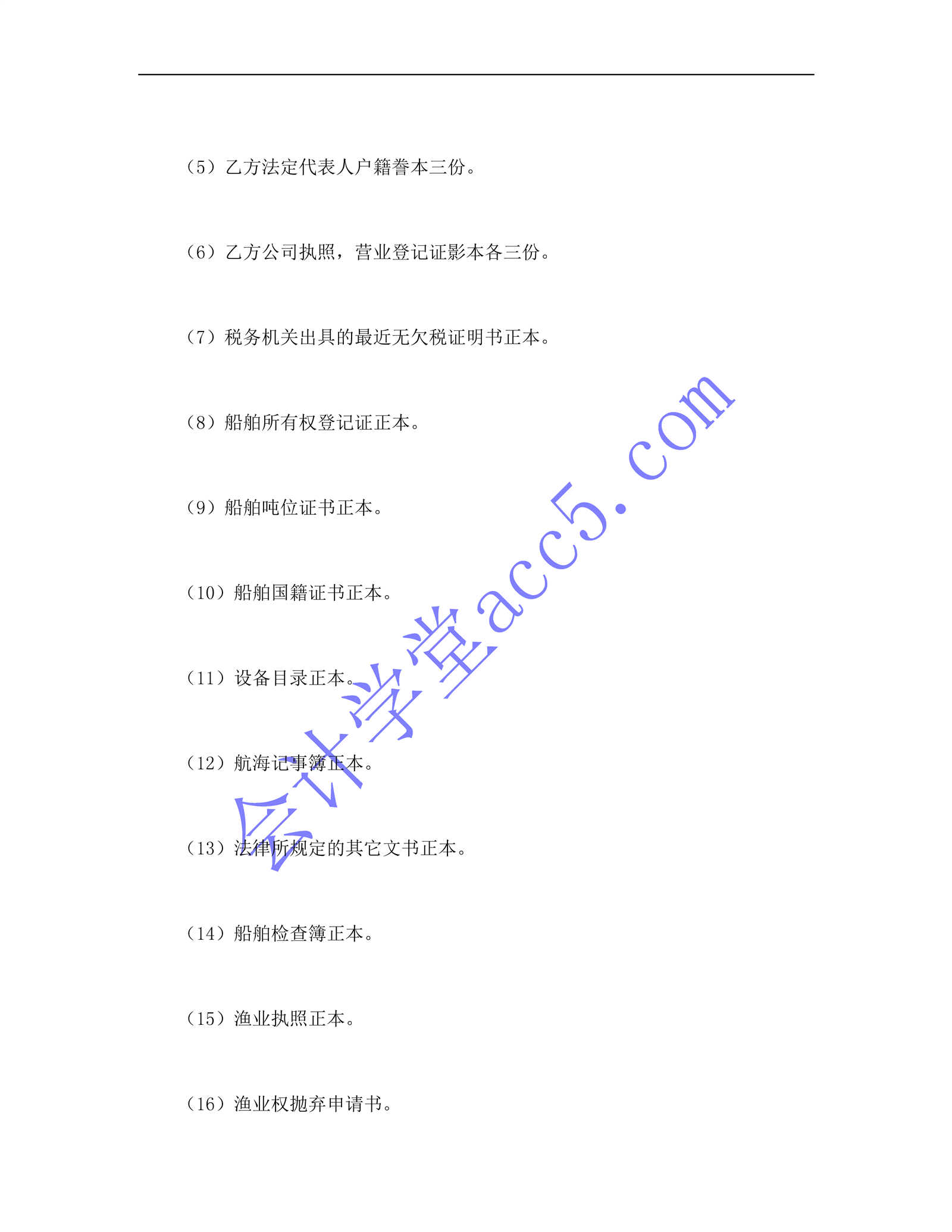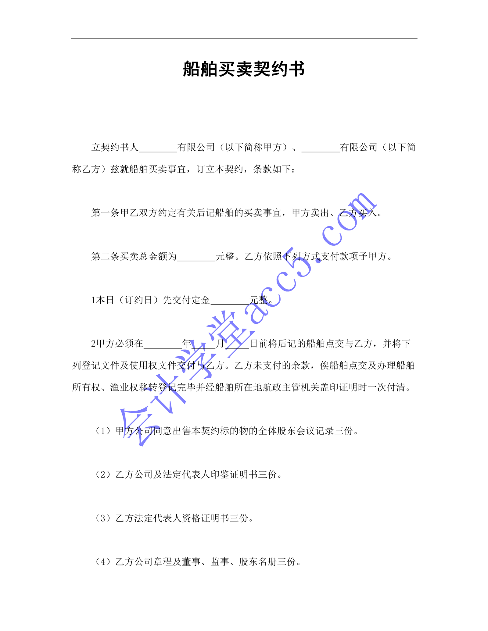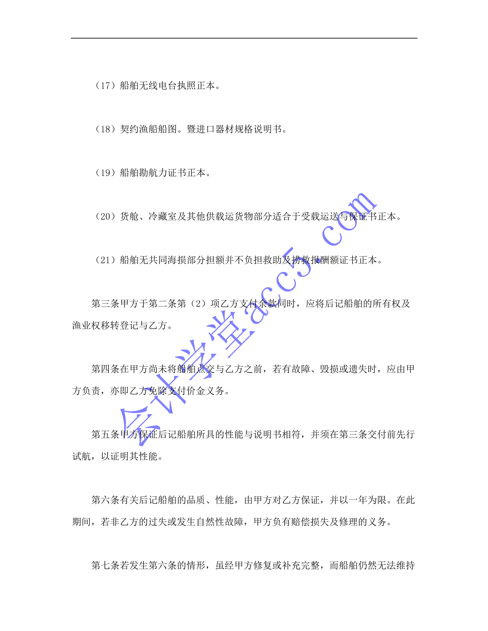 船舶买卖契约书介绍: