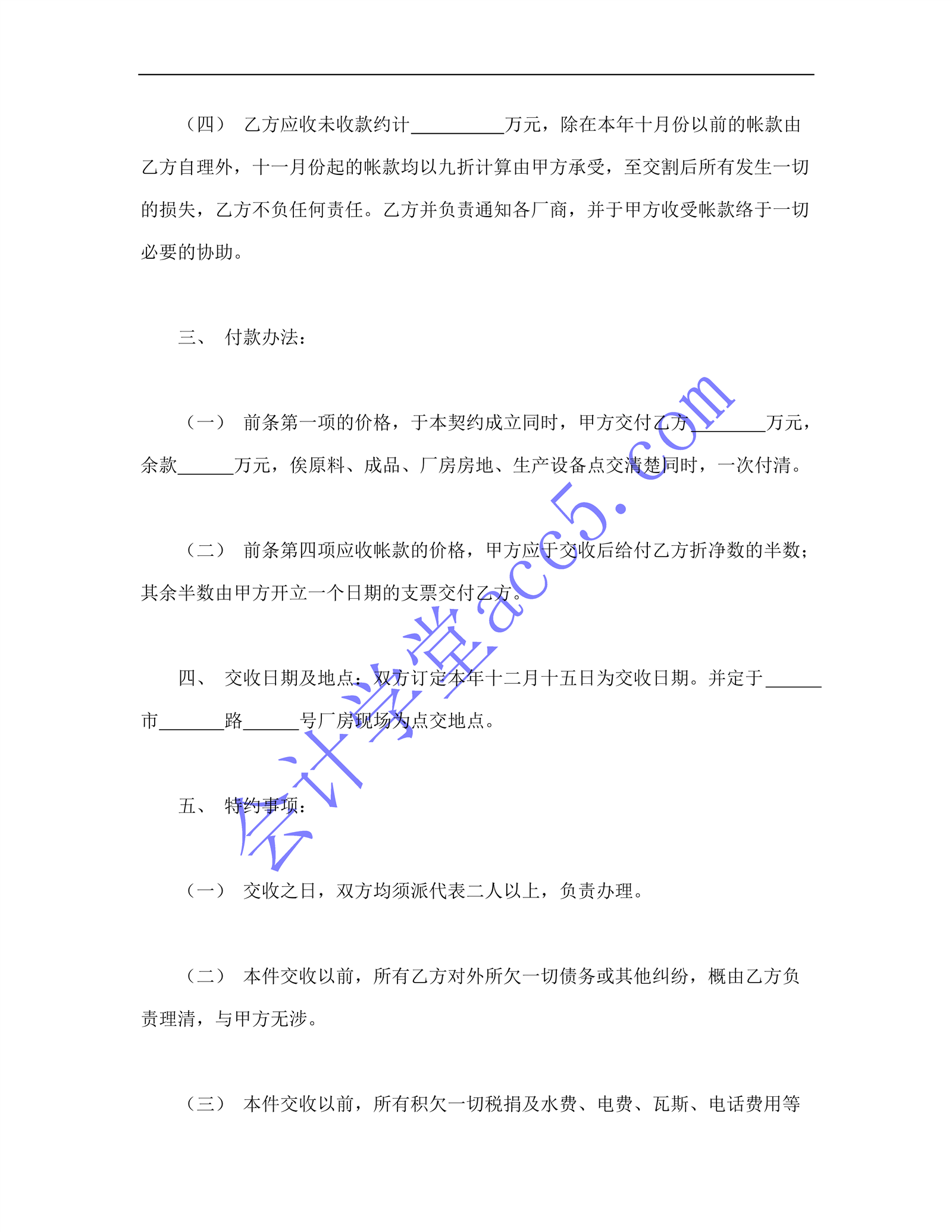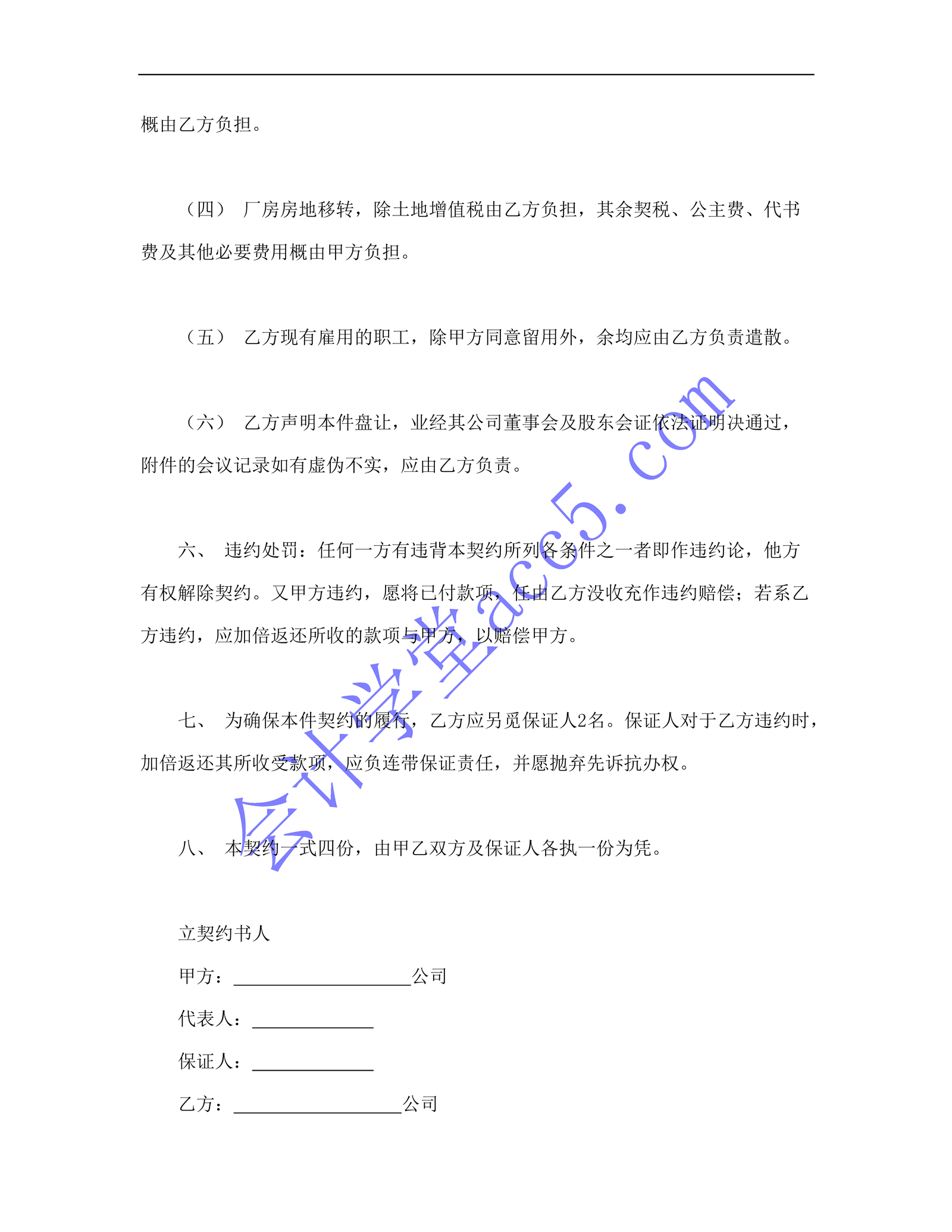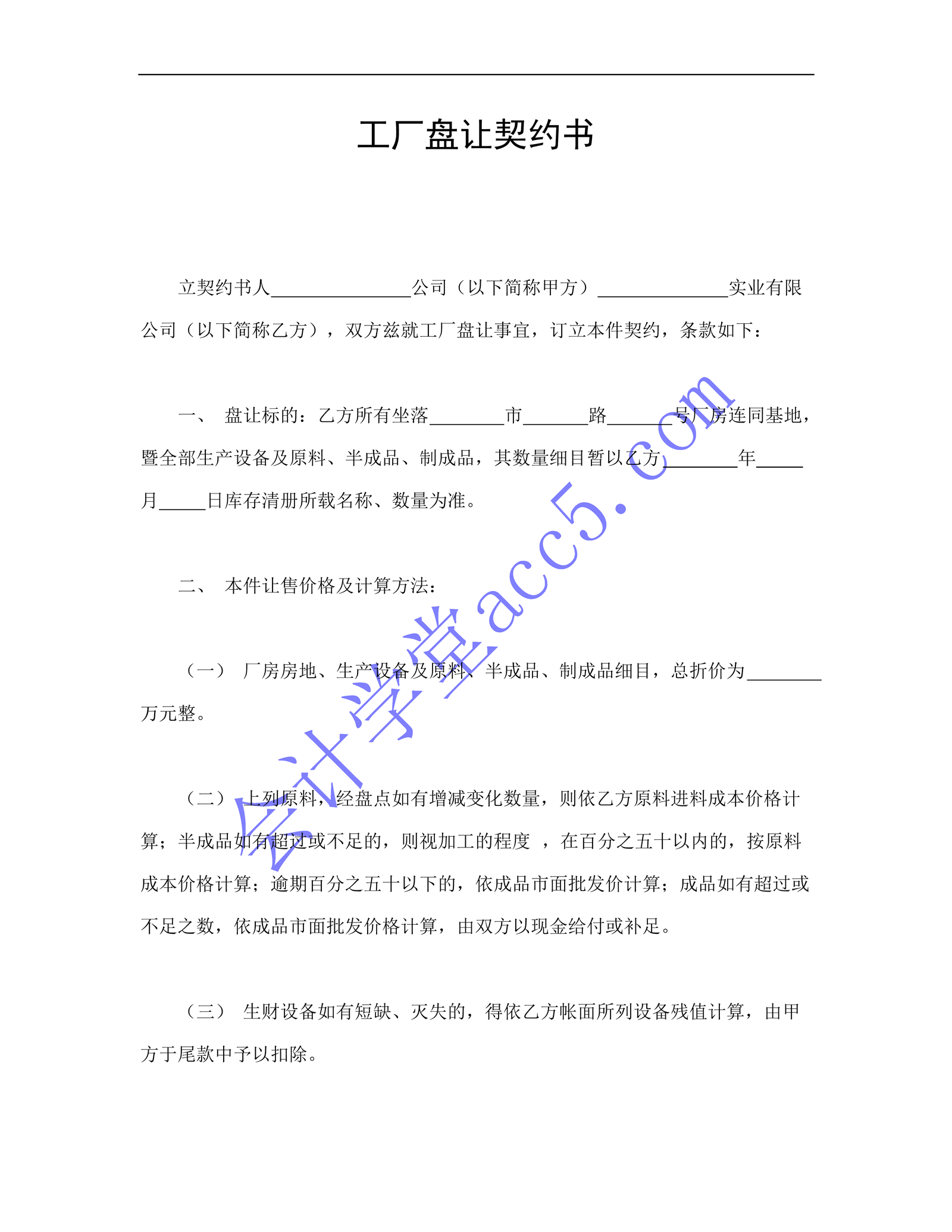 工厂盘让契约书