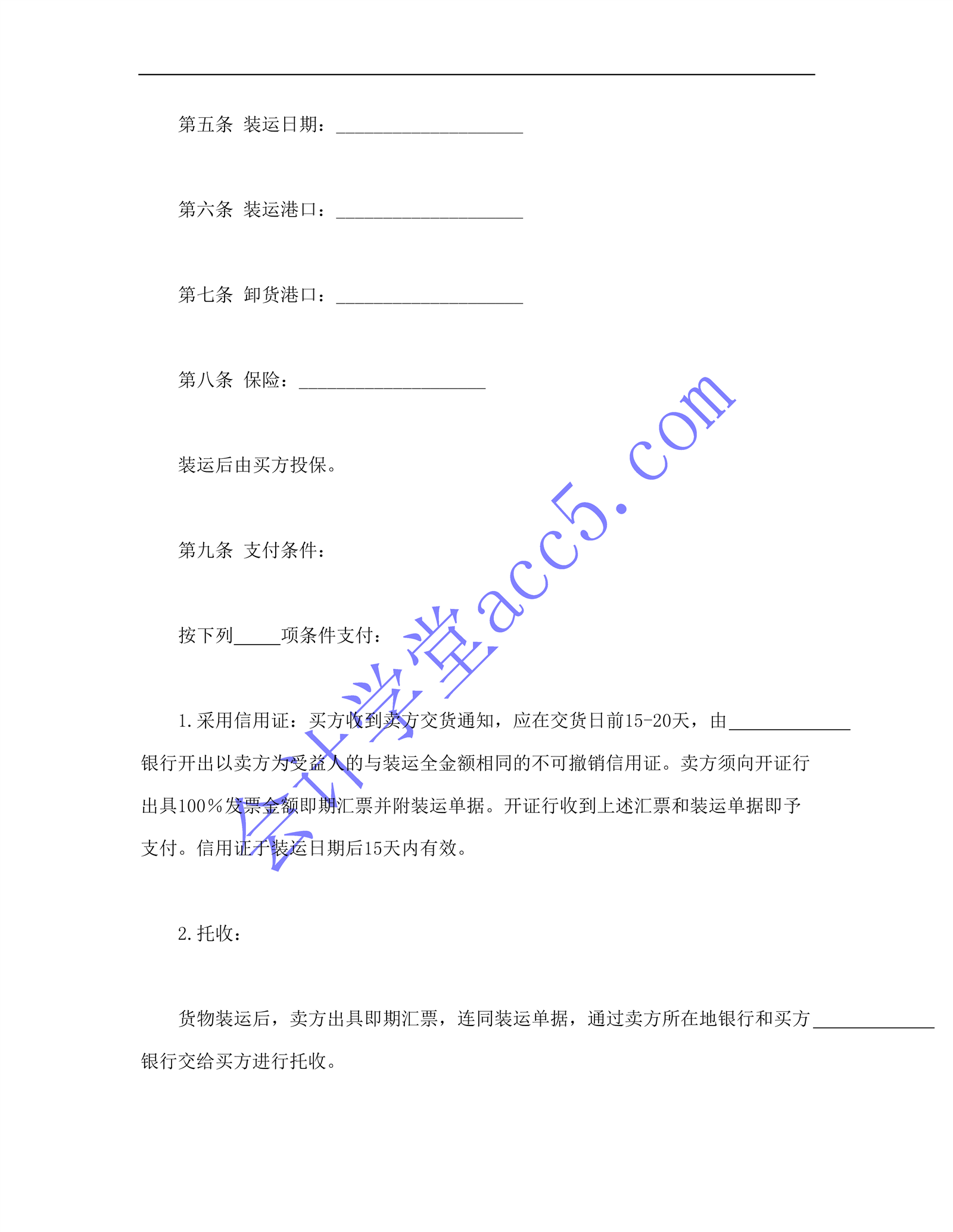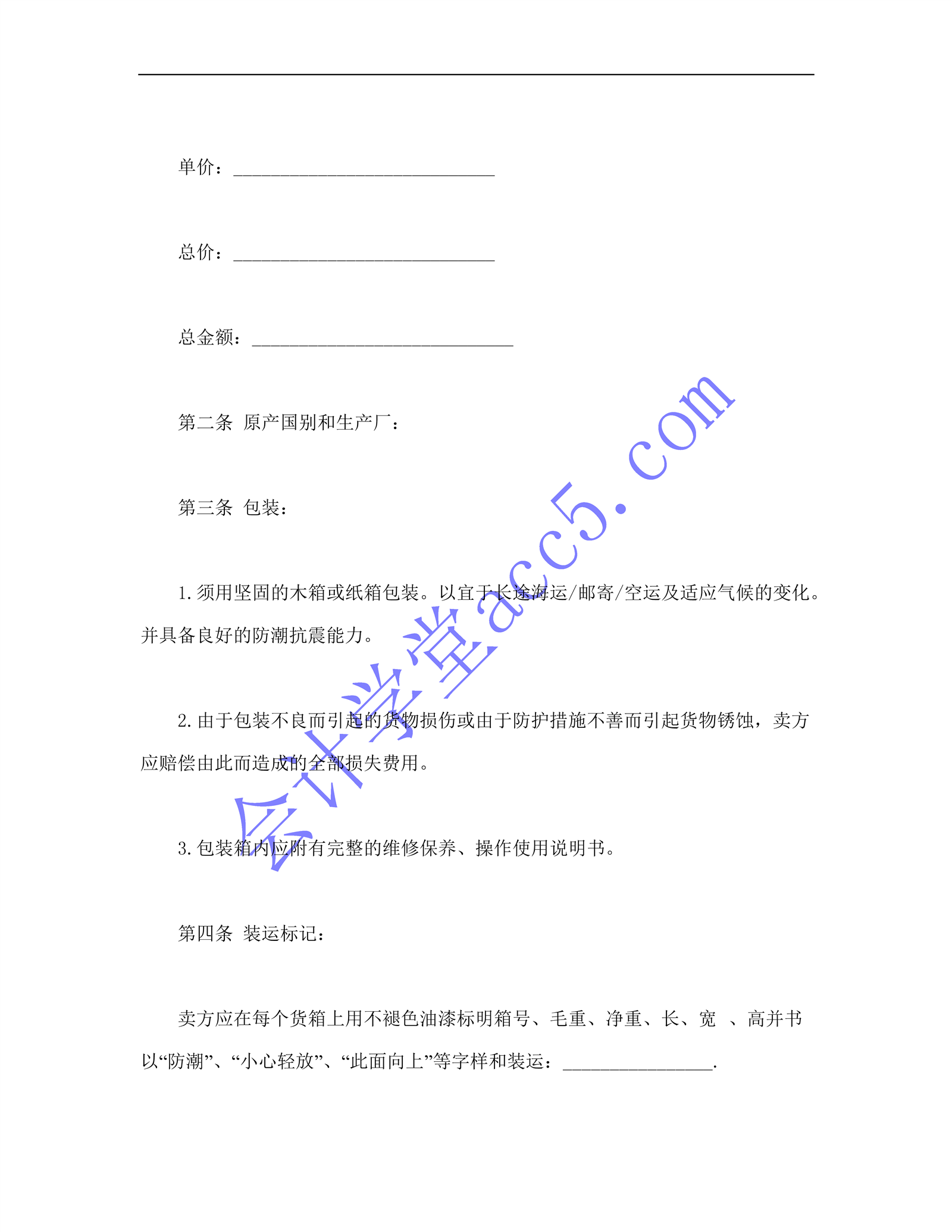 一般货物销售合同示范条款