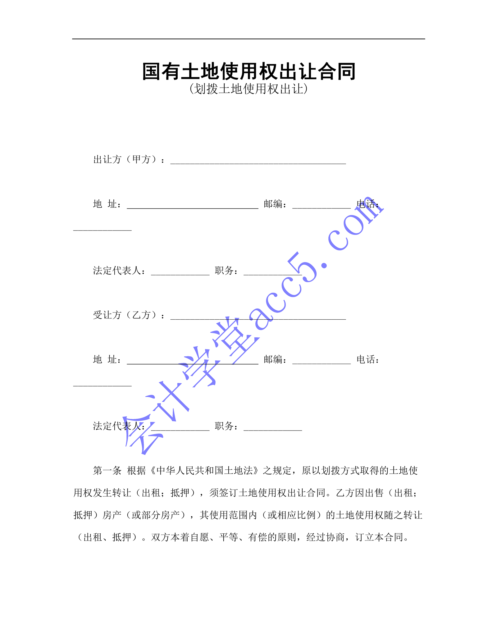 国有土地使用权出让合同介绍: