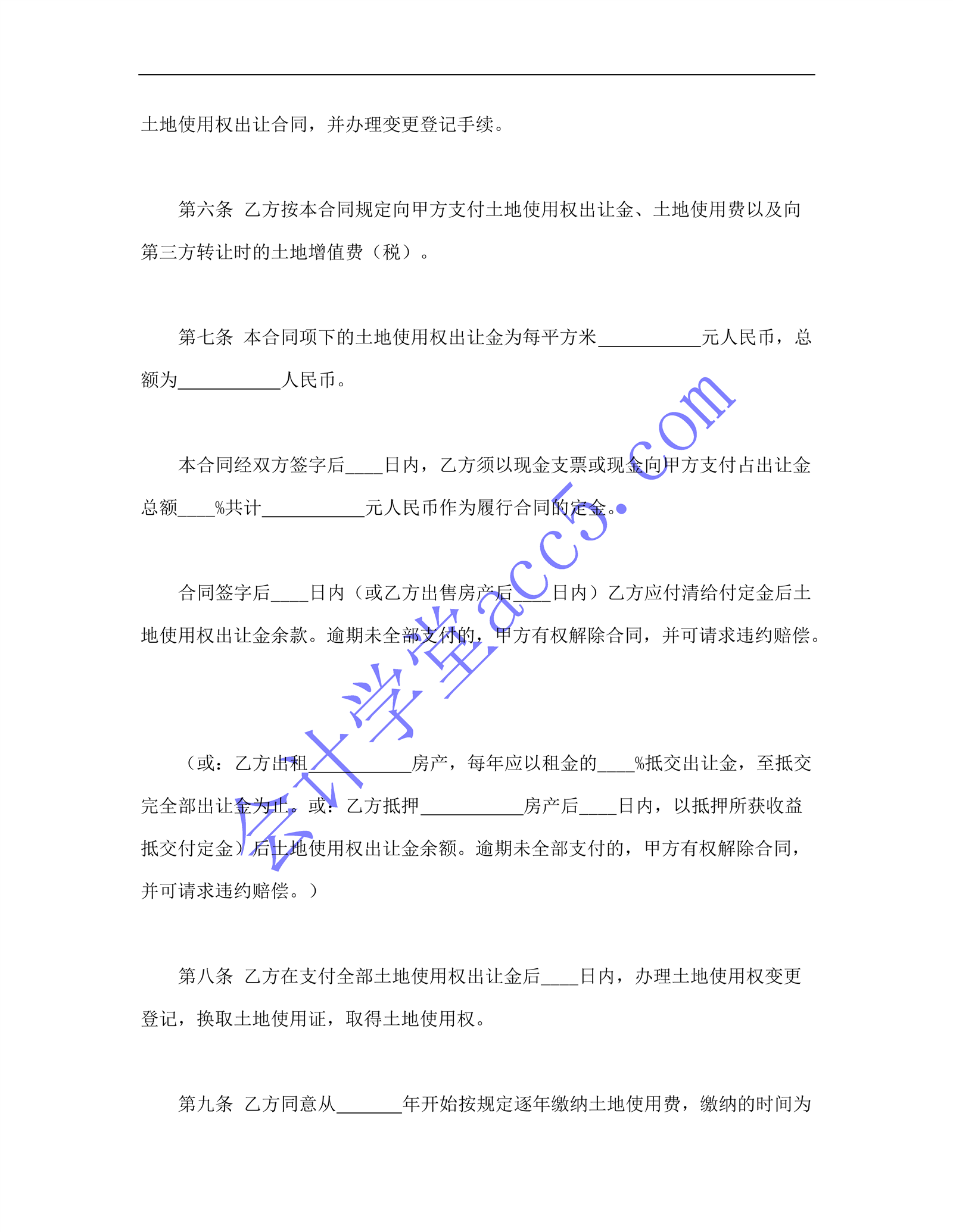 国有土地使用权出让合同