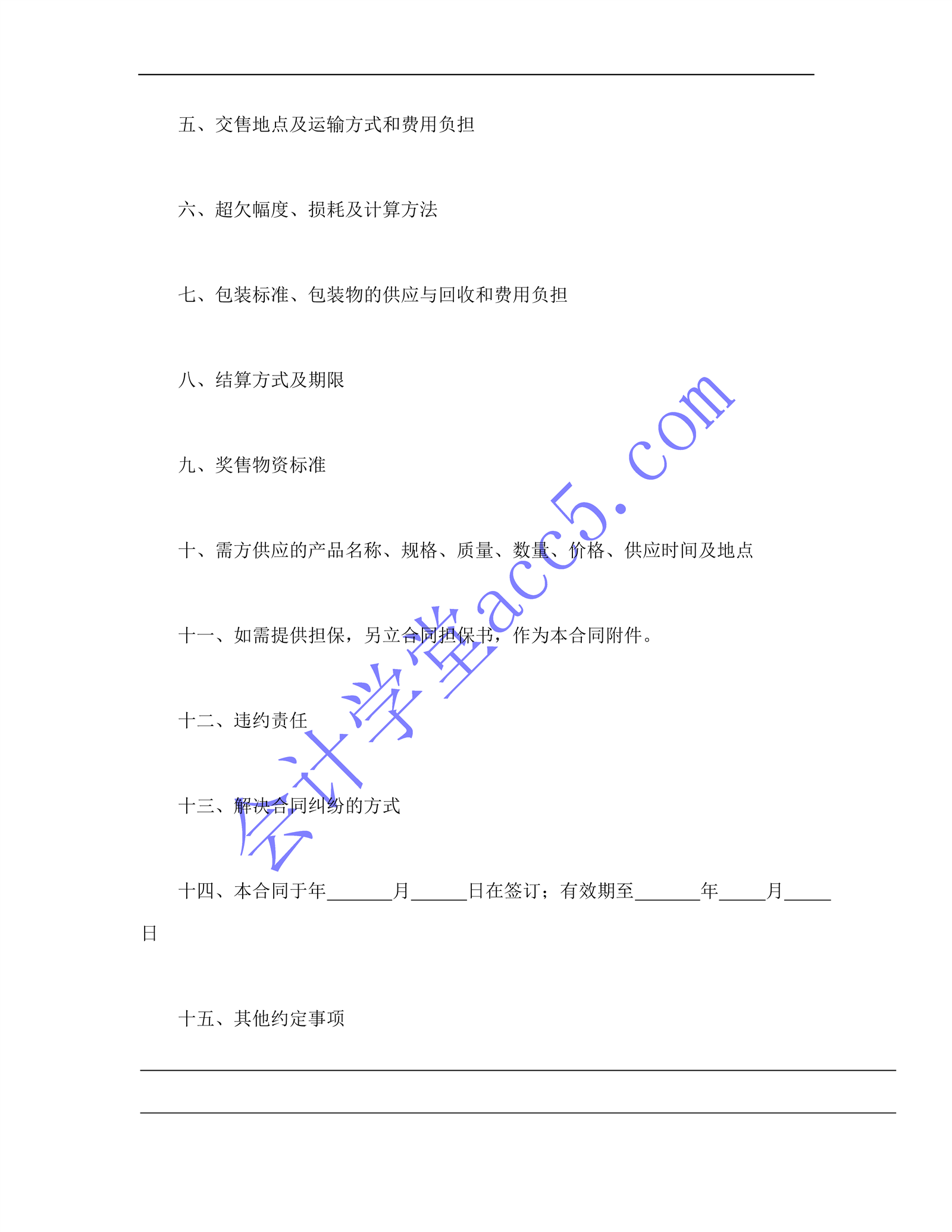 一般货物销售合同示范条款