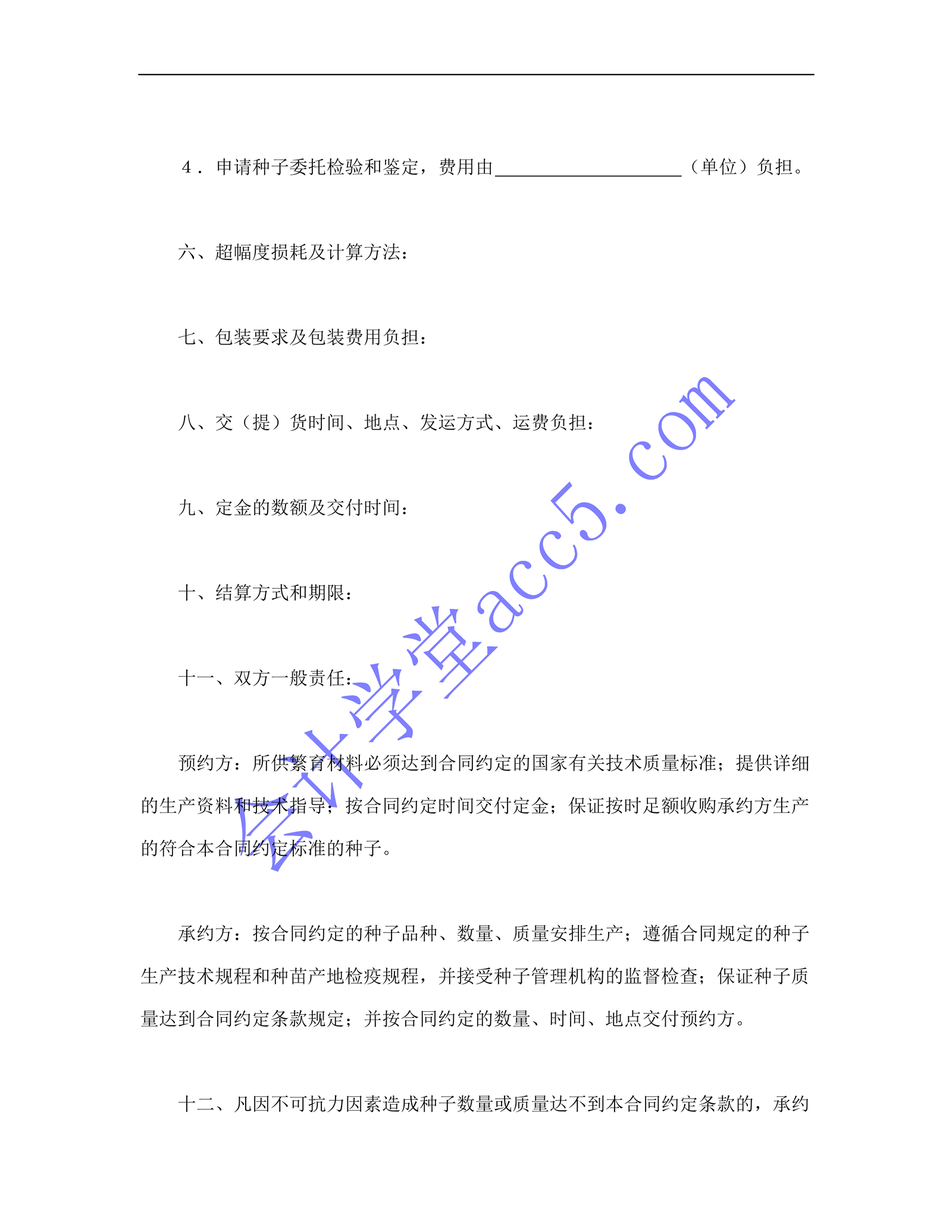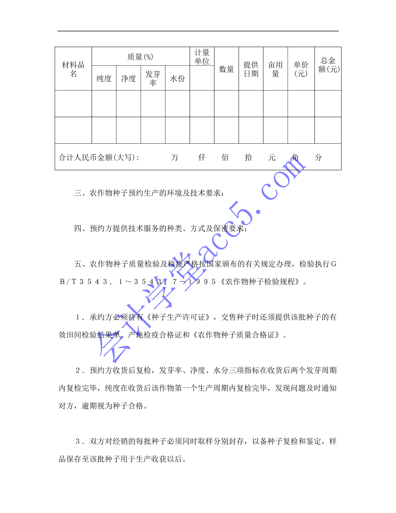 农作物种子预约生产合同