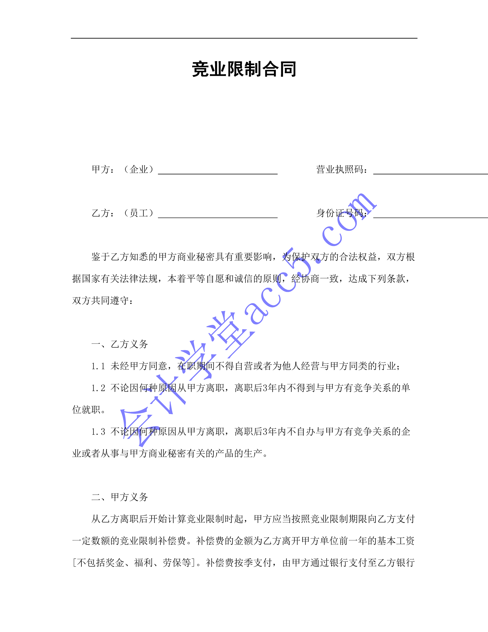 竞业限制合同