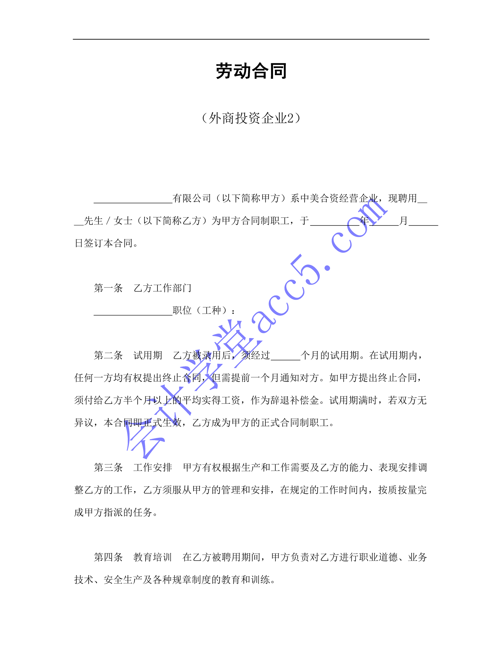 劳动合同(外商投资企业2)介绍: