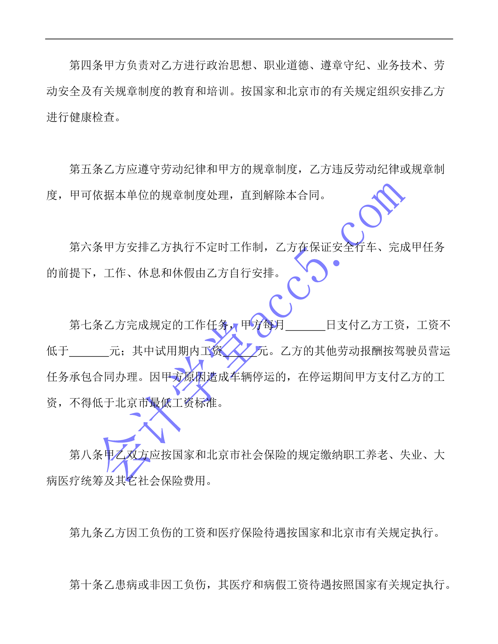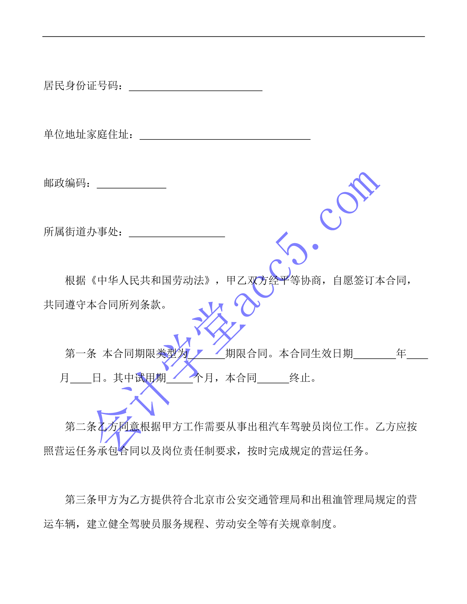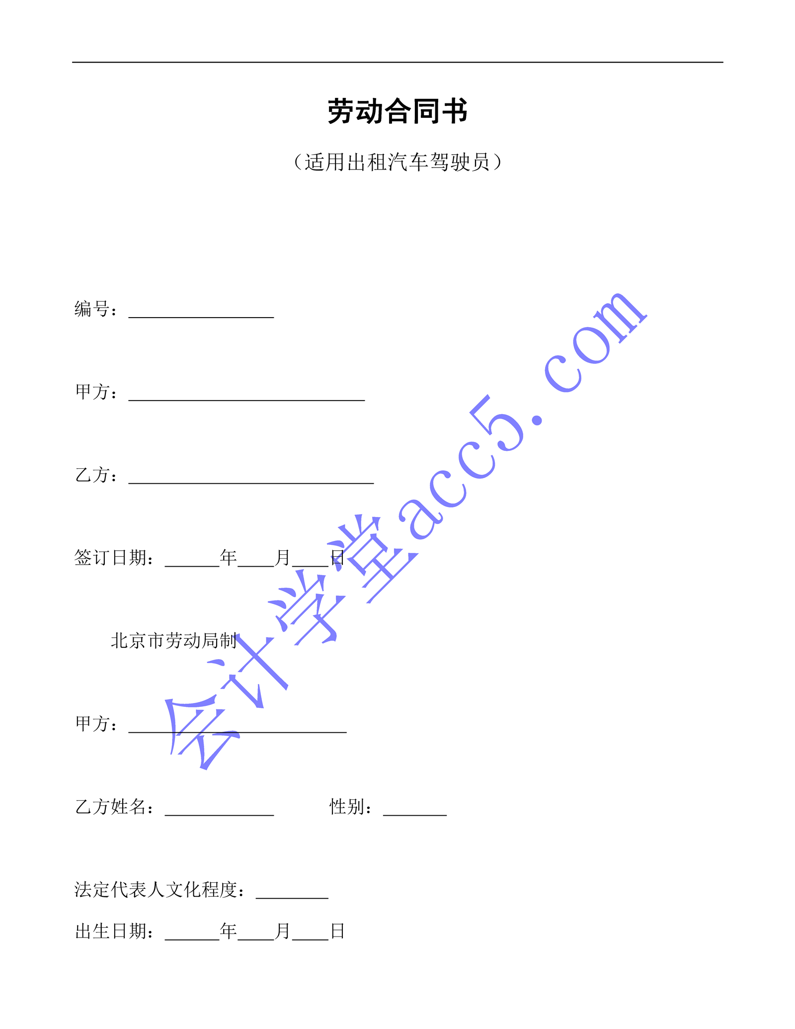劳动合同书(适用出租汽车驾驶员)介绍: