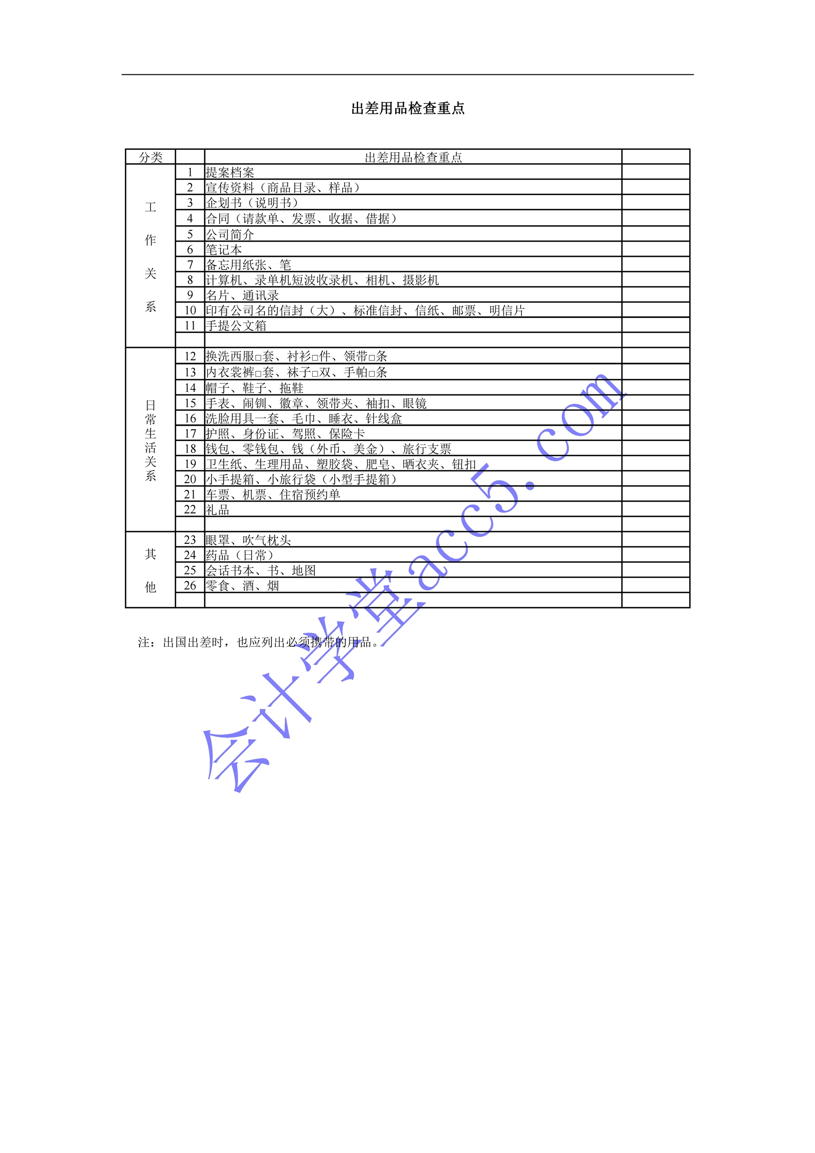 出差用品检查重点介绍: