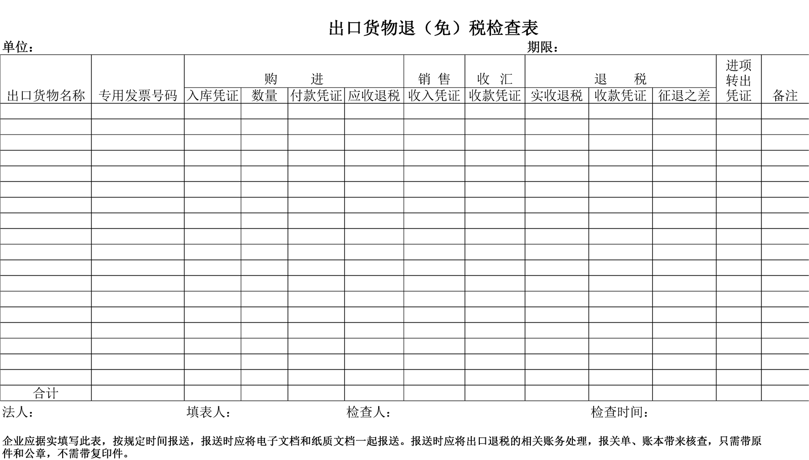 退税检查表介绍: