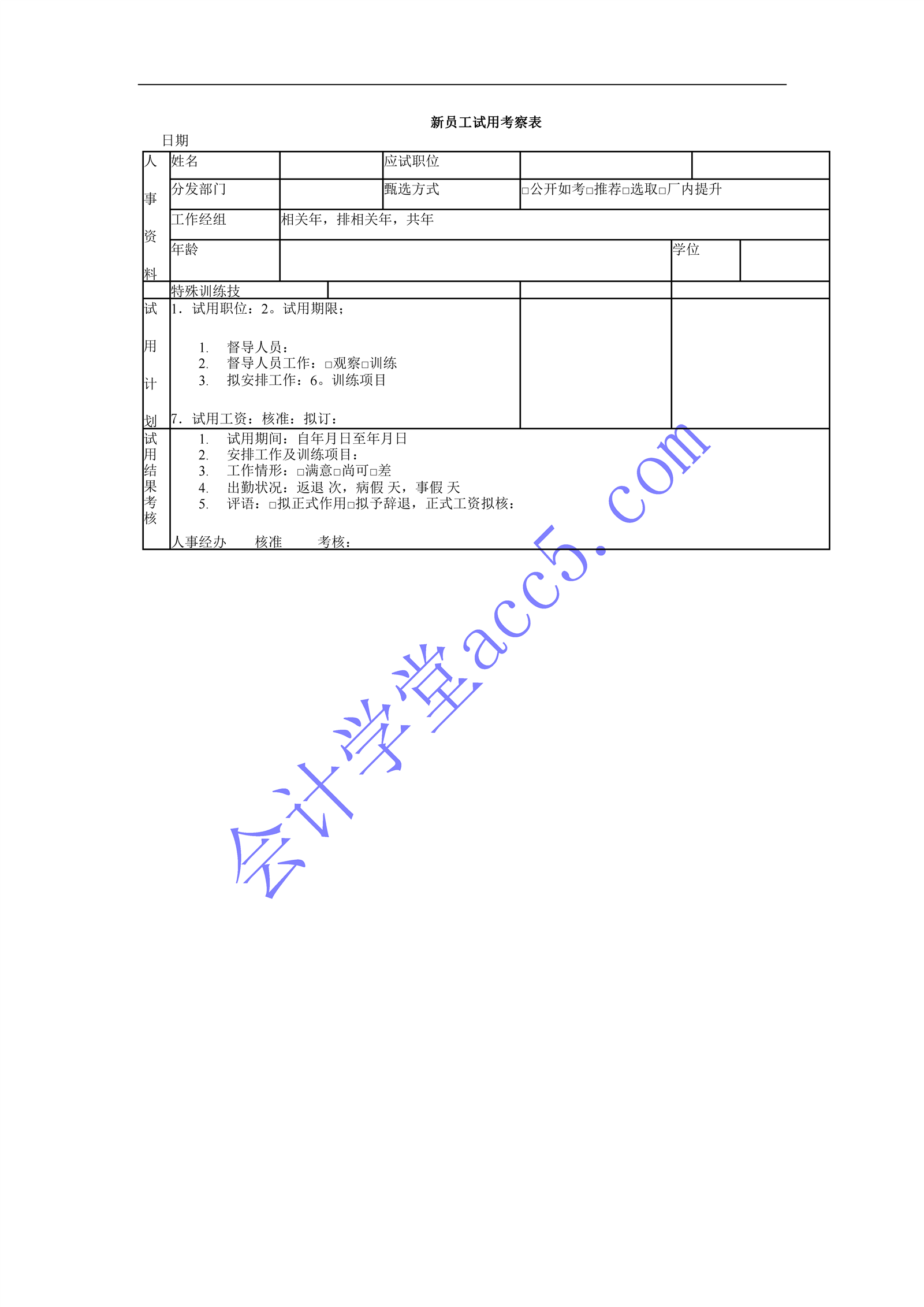 新员工试用考察表介绍: