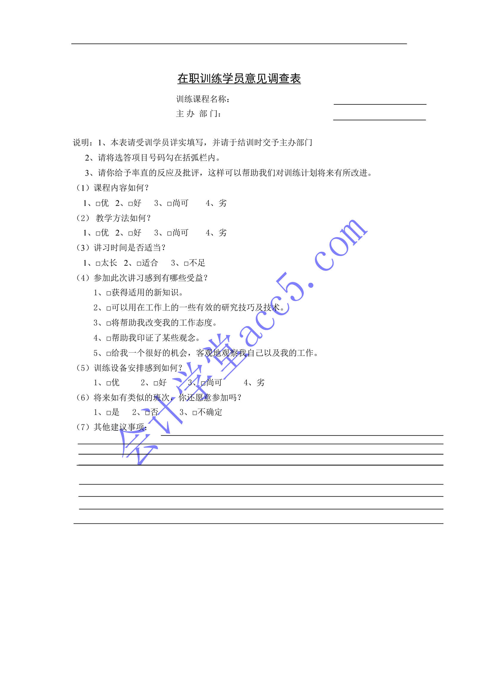 在职训练学员意见调查介绍: