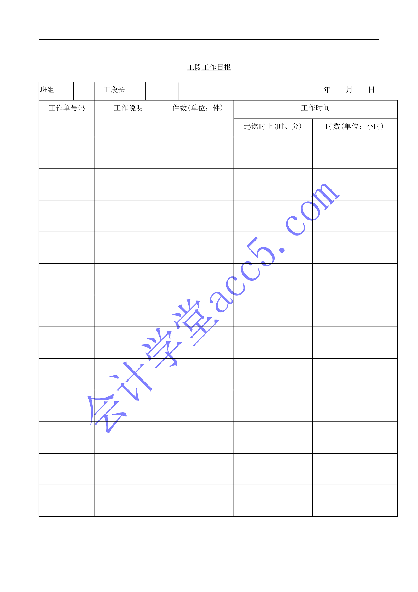 工段工作日报