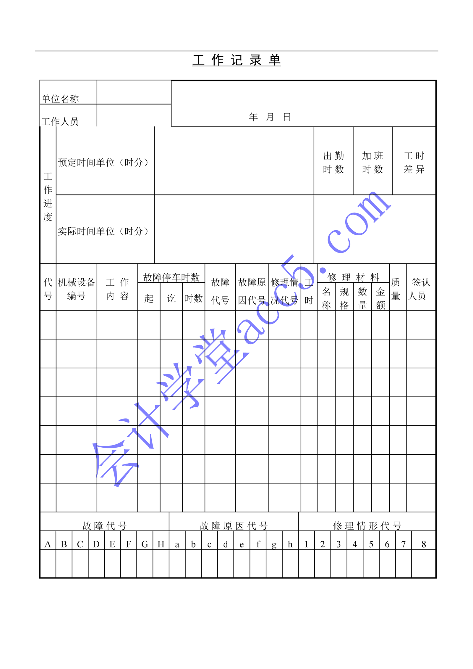 工作记录单